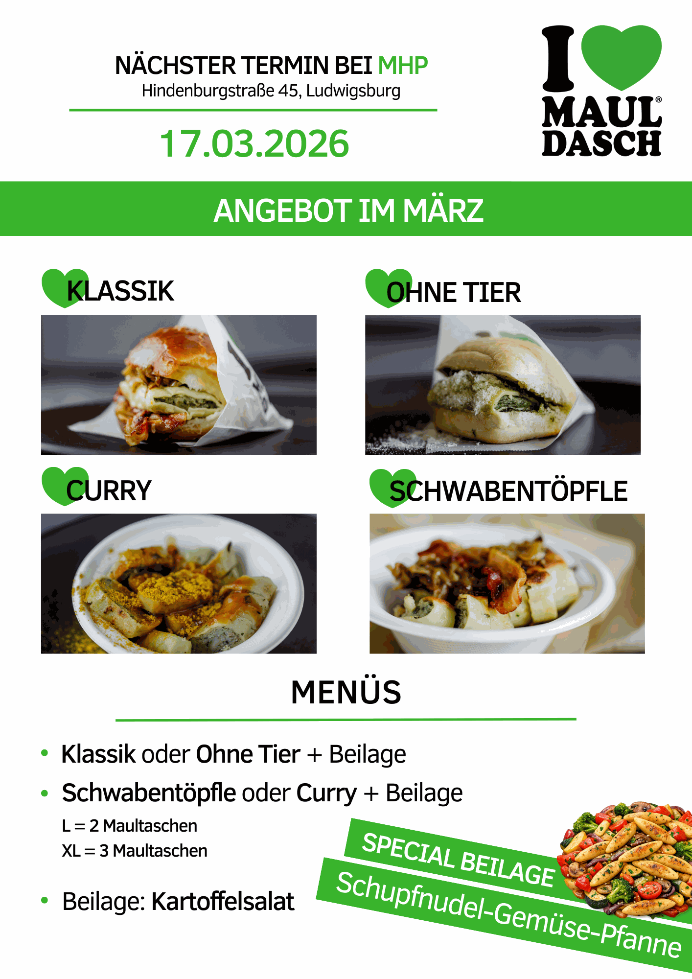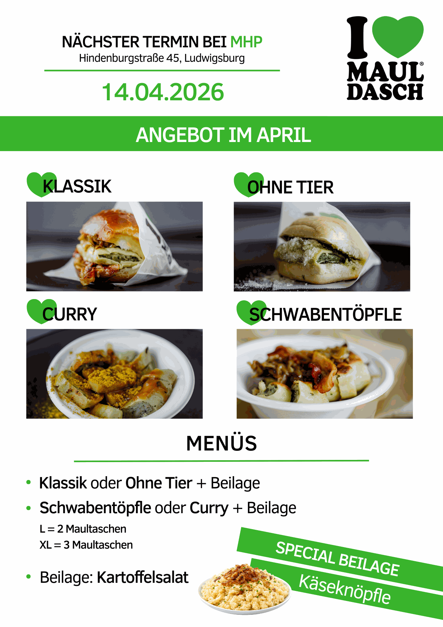 Wir von I Love Mauldasch sind in Stuttgart am Start und servieren euch unsere legendären Gerichte.